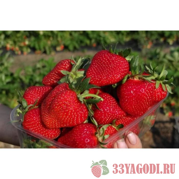 Культуру называют лучшей в сегменте среднеспелых неремонтантных сортов. Мощное растение с обильными листьями скрывает ягоду от палящего солнца. Плоды созревают равномерно, плодоношение стабильное. Плод прямой конической формы, яркого красного цвета. Плотная мякоть ягоды позволяет транспортировать урожай и хранить на протяжении 3-х дней.